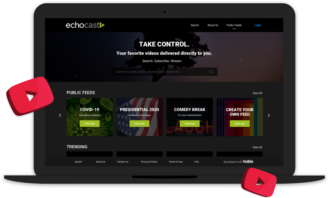 echocast wants you to have the best possible YouTube viewing experience by keeping your feed well fed. Take control back from the algorithms with custom channels, feeds and playlists.